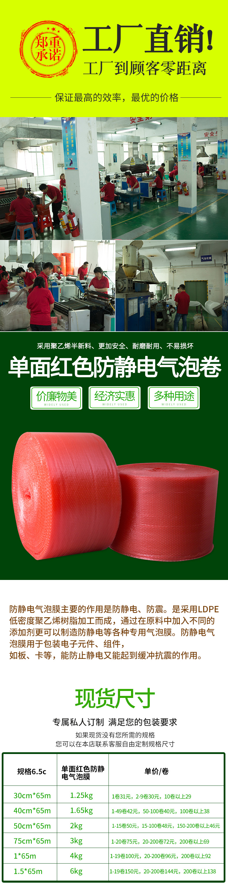 • 單面紅色防靜電氣泡卷