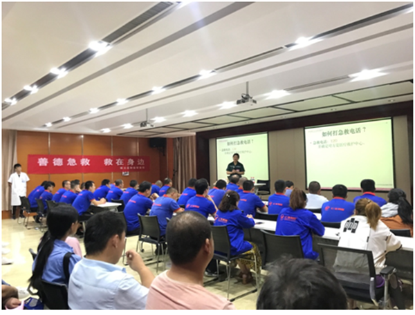 本次講座在山東仁豐特種材料股份有限公司劉總的簡練介紹下開始,首先,耿麗梅主任向大家講解了現(xiàn)場急救在工作生活中的重要性,尤其著重強(qiáng)調(diào)了急救黃金段和院前急救。其次,耿主任通過理論與操作相結(jié)合的方式,為大家講述了現(xiàn)場急救的注意事項(xiàng)、如何進(jìn)行正確有效的心肺復(fù)蘇、異物梗阻的海姆立克手法,并與助手為大家進(jìn)行演練操作,手把手教導(dǎo)員工學(xué)會氣管異物的現(xiàn)場急救。各位企業(yè)學(xué)員積極體驗(yàn),耿主任同時(shí)針對細(xì)節(jié)方面也給予了認(rèn)真指導(dǎo);最后,耿主任結(jié)合工作生活中的例子向企業(yè)員工一一列舉了心肺復(fù)蘇、兒童嗆奶、溺水的搶救手法,讓員工們更進(jìn)一步體會到掌握急救技能的重要性,從而大大提高了企業(yè)員工的急救、搶救能力并為企業(yè)員工敲響了安全警鐘!